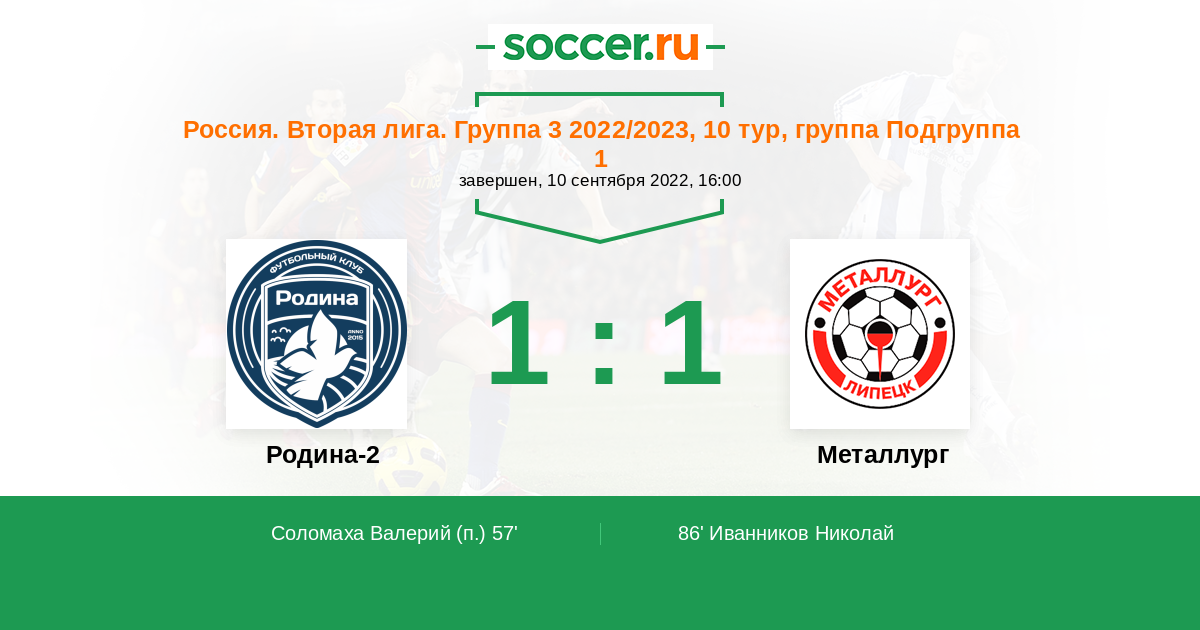 Россия. Вторая лига. Группа 3 2022/2023, 10 тур, Подгруппа 1