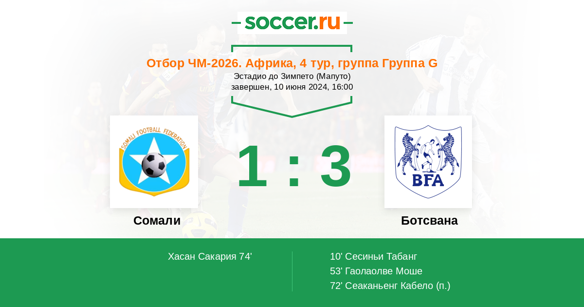 За последние 20 встреч результаты команд, конечно, были плохими, но разница в них есть и для аутсайдеров существенная - Ботсвана выиграла в 20% встреч, а вот Сомали только в 10%. Более того, в текущем розыгрыше группы гости идут выше соперника, опережая его на три очка.
