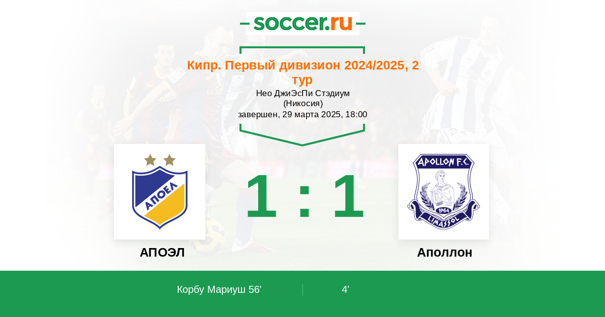 Матчи Кипр. Первый дивизион 2024/2025