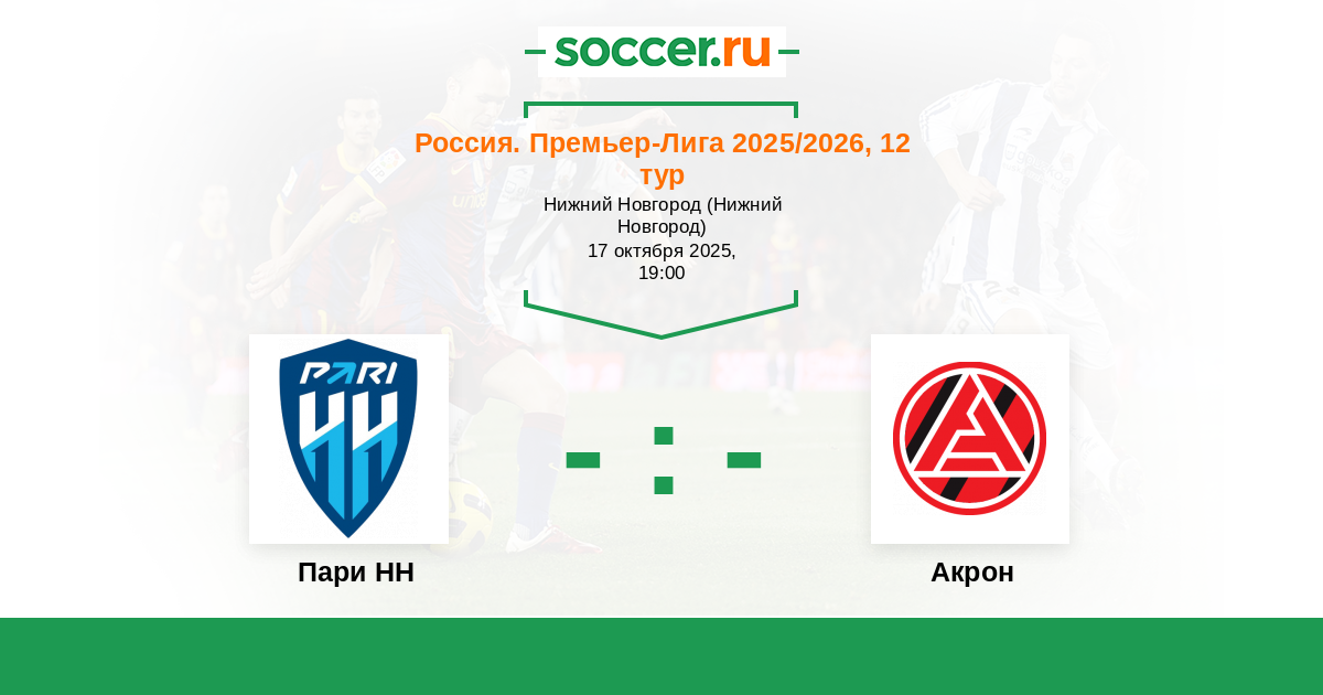Пари НН - Акрон ! Очки нужны и тем и другим - оба клуба в опасной зоне внизу таблицы . Обороной команды не отличаются . Между собой играют довольно результативно .