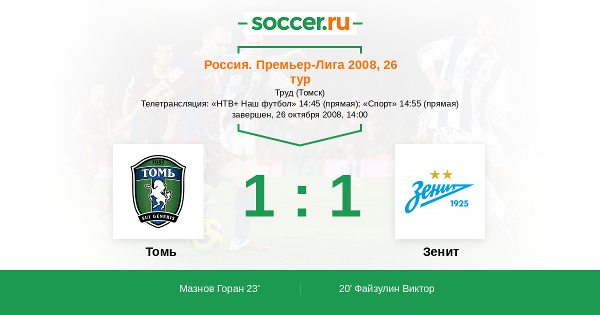 Телетрансляция: «НТВ+ Наш футбол» 14:45 (прямая); «Спорт» 14:55 (прямая)