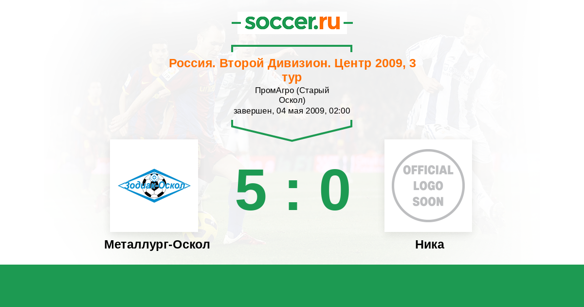 Россия. Вторая лига. Группа 3 01.08.2009 Ника Логотип футбольный клуб Ника (Москва) 1:2 Логотип футбольный клуб Металлург-Оскол (Старый Оскол) Металлург-Оскол