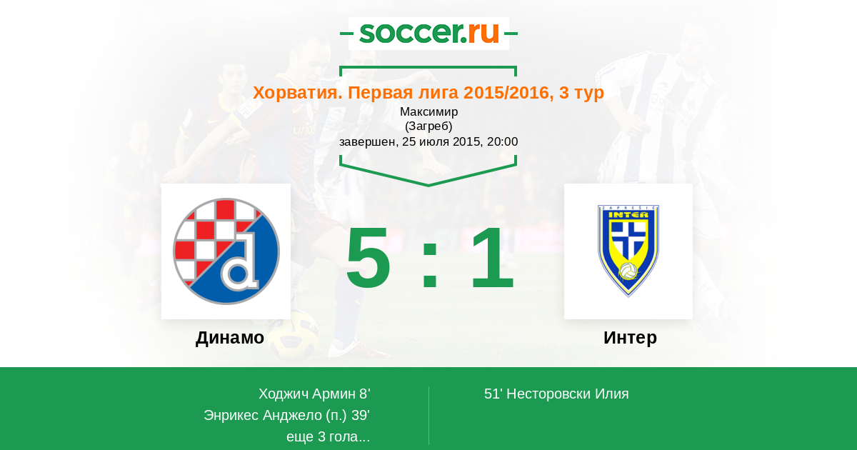 Хорватия. Первая лига 19.12.2015 Динамо Логотип футбольный клуб Динамо (Загреб) 1:0 Логотип футбольный клуб Интер (Запрешич) Интер