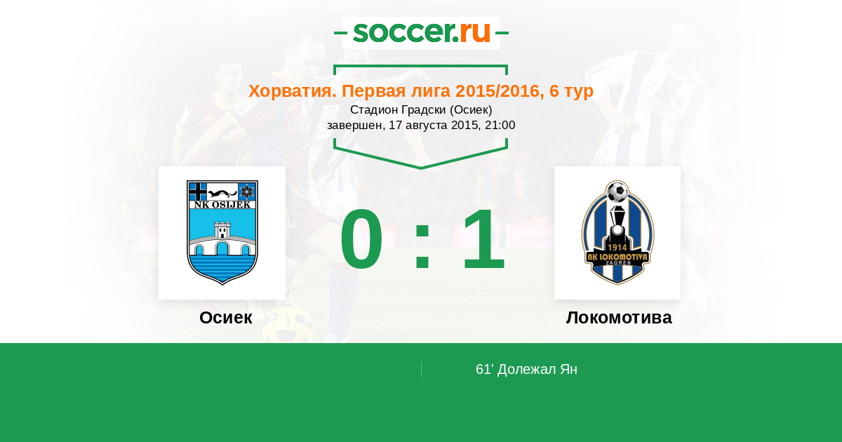 Хорватия. Первая лига 31.10.2015 Локомотива Логотип футбольный клуб Локомотива (Загреб) 2:1 Логотип футбольный клуб Осиек Осиек