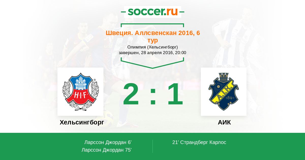 Швеция. Аллсвенскан 05.05.2014 АИК Логотип футбольный клуб АИК (Стокгольм) 2:1 Логотип футбольный клуб Хельсингборг Хельсингборг