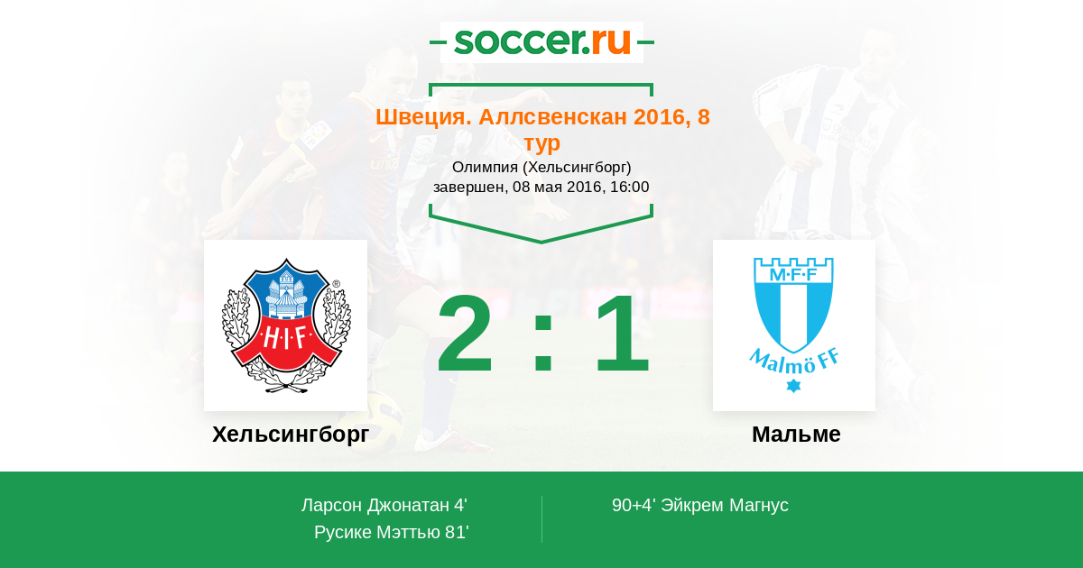Швеция. Аллсвенскан 10.05.2012 Мальме Логотип футбольный клуб Мальме 3:0 Логотип футбольный клуб Хельсингборг Хельсингборг