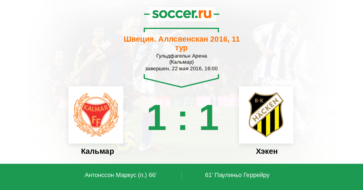 Швеция. Аллсвенскан 14.05.2011 Кальмар Логотип футбольный клуб Кальмар 2:0 Логотип футбольный клуб Хэкен (Гетеборг) Хэкен