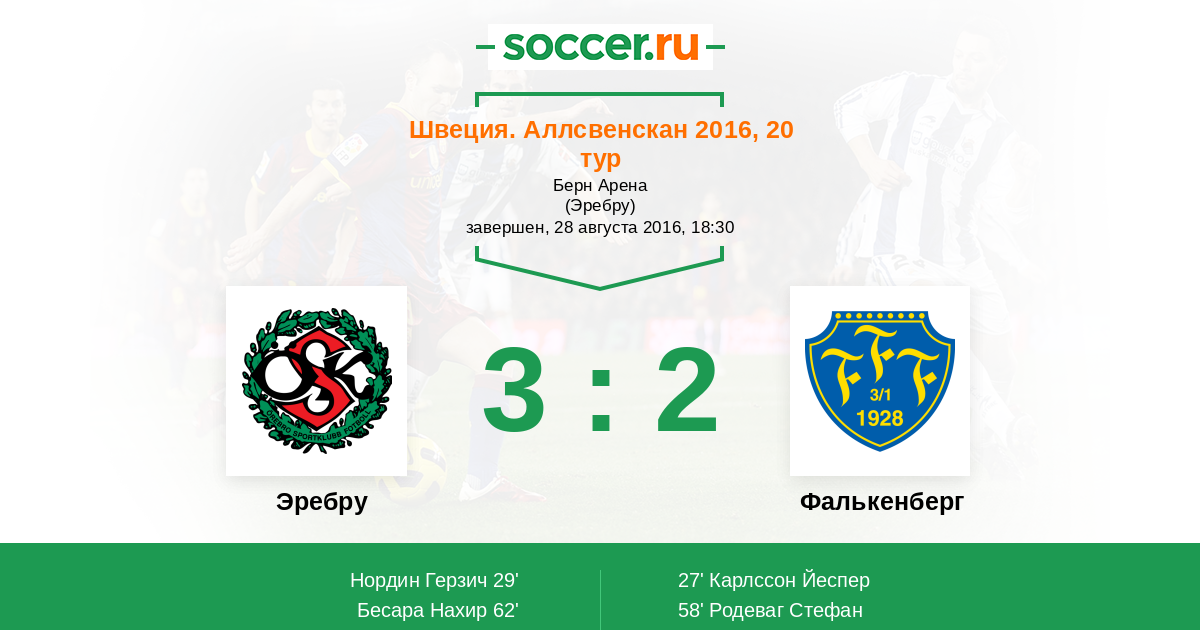 Швеция. Аллсвенскан 20.09.2014 Фалькенберг Логотип футбольный клуб Фалькенберг 1:3 Логотип футбольный клуб Эребру Эребру