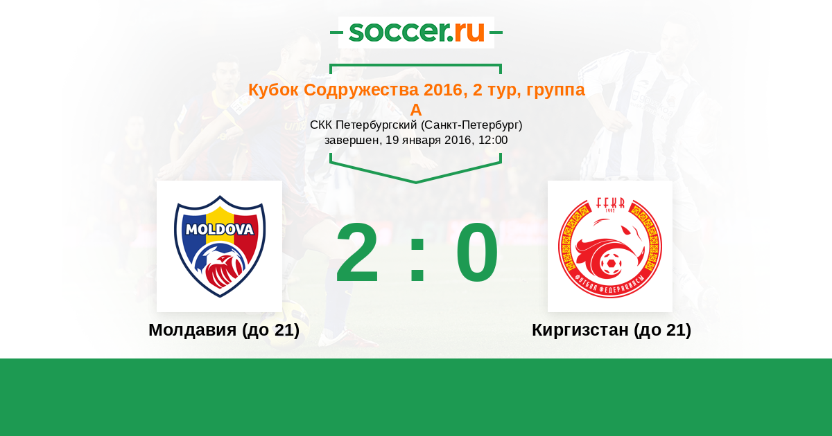 Кубок Содружества 19.01.2016 Молдавия (до 21)   2:0   Киргизстан (до 21)