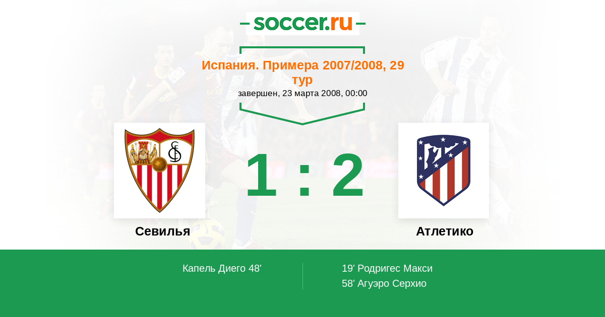 Испания. Примера 22.02.2009 Севилья Логотип футбольный клуб Севилья 1:0 Логотип футбольный клуб Атлетико (Мадрид) Атлетико
