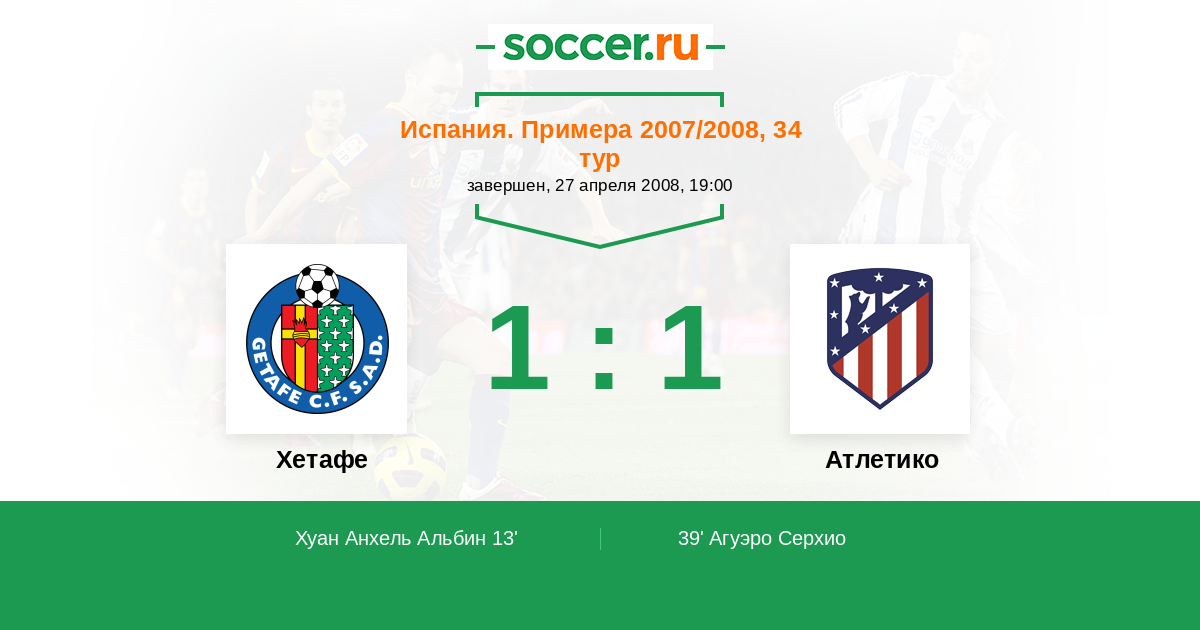 Испания. Примера 09.12.2007 Атлетико Логотип футбольный клуб Атлетико (Мадрид) 1:0 Логотип футбольный клуб Хетафе Хетафе