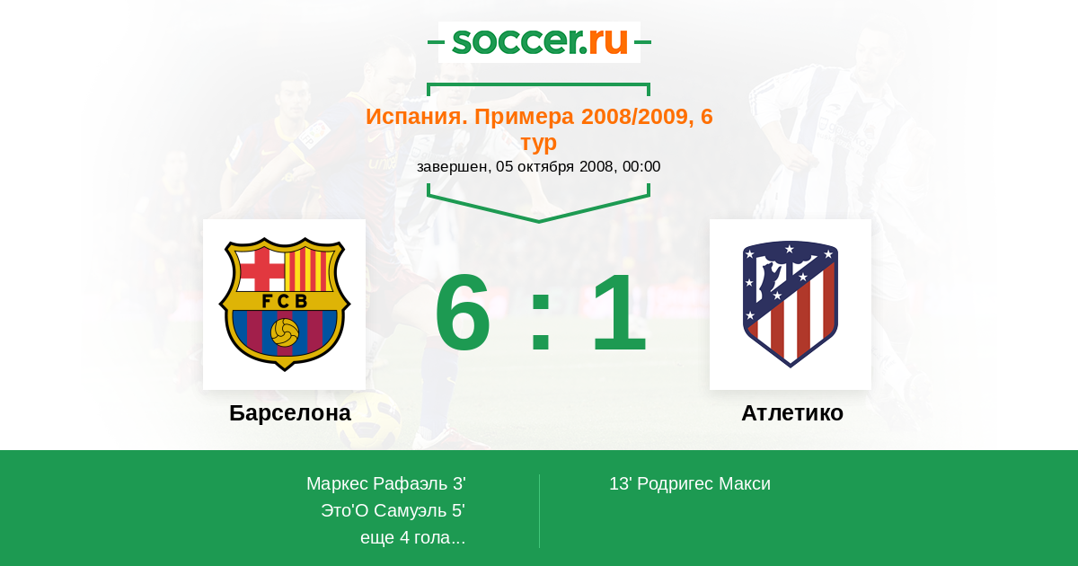 Испания. Примера 17.09.2005 Атлетико Логотип футбольный клуб Атлетико (Мадрид) 2:1 Логотип футбольный клуб Барселона Барселона