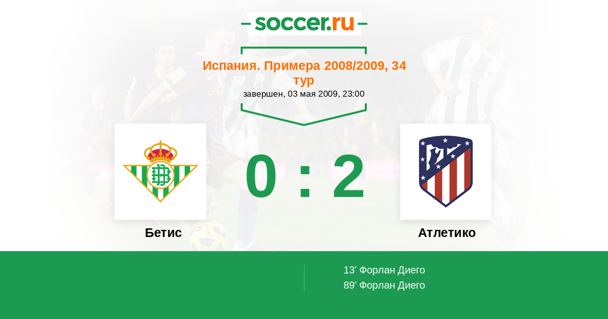 Испания. Примера 14.05.2017 Бетис Логотип футбольный клуб Бетис (Севилья) 1:1 Логотип футбольный клуб Атлетико (Мадрид) Атлетико