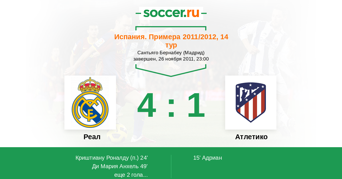 Испания. Примера 12.04.2012 Атлетико Логотип футбольный клуб Атлетико (Мадрид) 1:4 Логотип футбольный клуб Реал (Мадрид) Реал