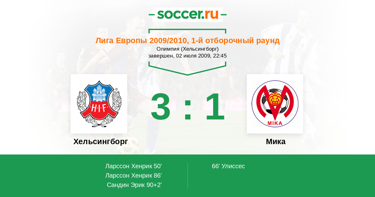 Лига Европы 21.07.2011 Мика   0:1   Волеренга