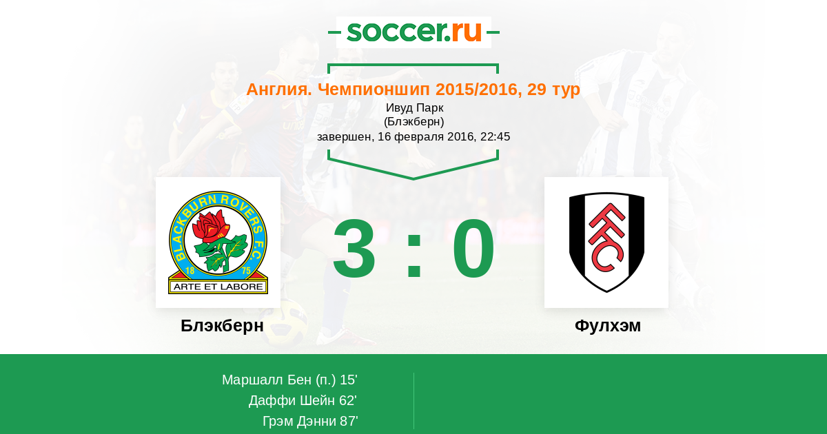 Англия. Чемпионшип 13.09.2015 Фулхэм Логотип футбольный клуб Фулхэм (Лондон) 2:1 Логотип футбольный клуб Блэкберн Блэкберн