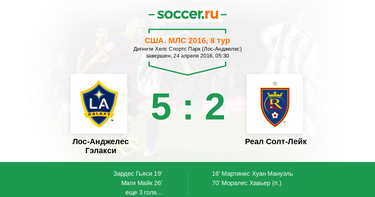 США. МЛС 09.06.2013 Реал Солт-Лейк Логотип футбольный клуб Реал Солт-Лейк (Солт-Лейк-Сити) 3:1 Логотип футбольный клуб Лос-Анджелес Гэлакси Лос-Анджелес Гэлакси