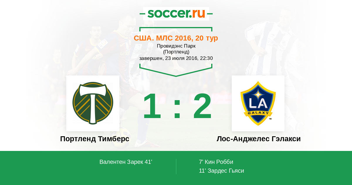 США. МЛС 18.06.2012 Лос-Анджелес Гэлакси Логотип футбольный клуб Лос-Анджелес Гэлакси 1:0 Логотип футбольный клуб Портленд Тимберс Портленд Тимберс
