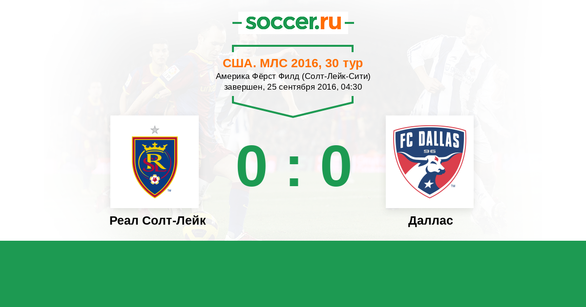 США. МЛС 26.06.2016 Даллас Логотип футбольный клуб Даллас 2:0 Логотип футбольный клуб Реал Солт-Лейк (Солт-Лейк-Сити) Реал Солт-Лейк