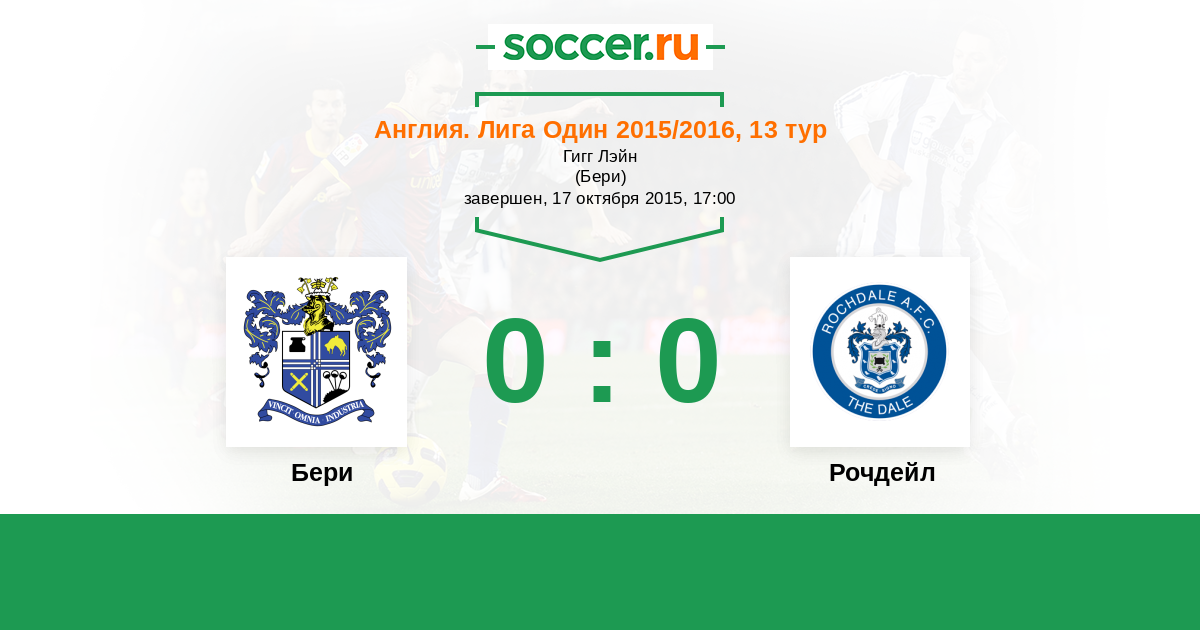 Англия. Первая Футбольная Лига 15.10.2016 Рочдейл Логотип футбольный клуб Рочдейл 2:0 Логотип футбольный клуб Бери Бери