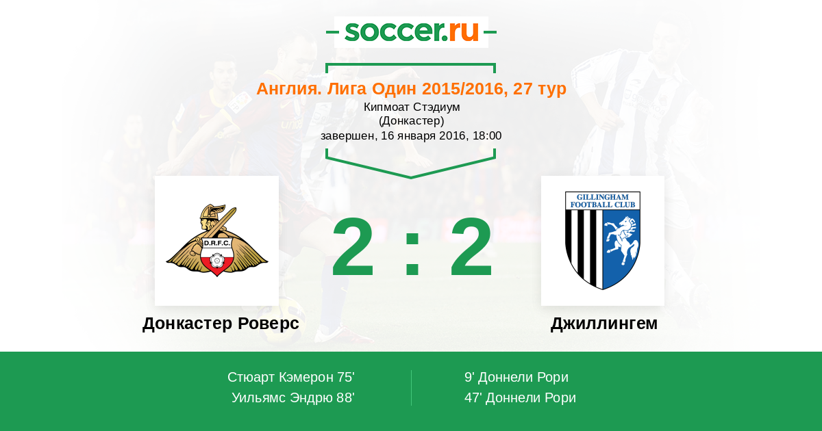 Англия. Первая Футбольная Лига 07.03.2015 Джиллингем Логотип футбольный клуб Джиллингем 1:1 Логотип футбольный клуб Донкастер Роверс Донкастер Роверс
