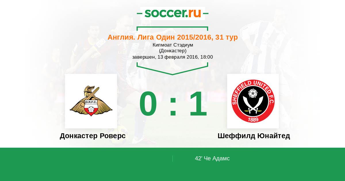 Англия. Первая Футбольная Лига 26.09.2015 Шеффилд Юнайтед Логотип футбольный клуб Шеффилд Юнайтед 3:1 Логотип футбольный клуб Донкастер Роверс Донкастер Роверс