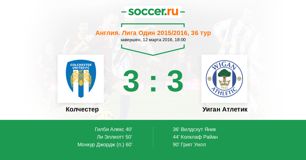 Англия. Первая Футбольная Лига 17.10.2015 Уиган Атлетик Логотип футбольный клуб Уиган Атлетик 5:0 Логотип футбольный клуб Колчестер Колчестер