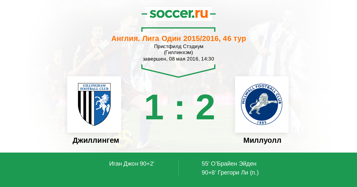 Англия. Первая Футбольная Лига 08.04.2017 Джиллингем Логотип футбольный клуб Джиллингем 1:1 Логотип футбольный клуб Миллуолл (Лондон) Миллуолл