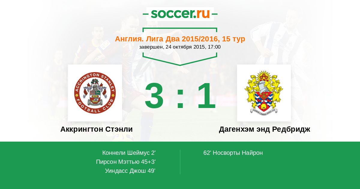 Аккрингтон Стэнли 1:0 0:0 1:0
