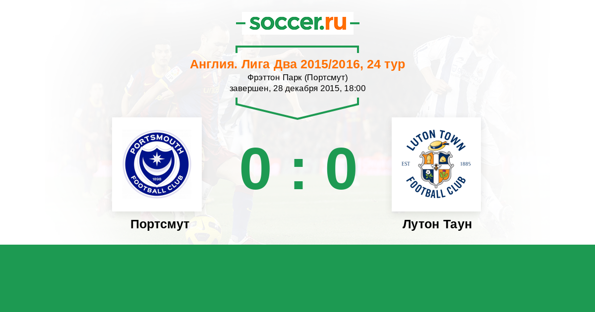 Англия. Вторая Футбольная Лига 02.01.2017 Портсмут Логотип футбольный клуб Портсмут 1:0 Логотип футбольный клуб Лутон Таун Лутон Таун