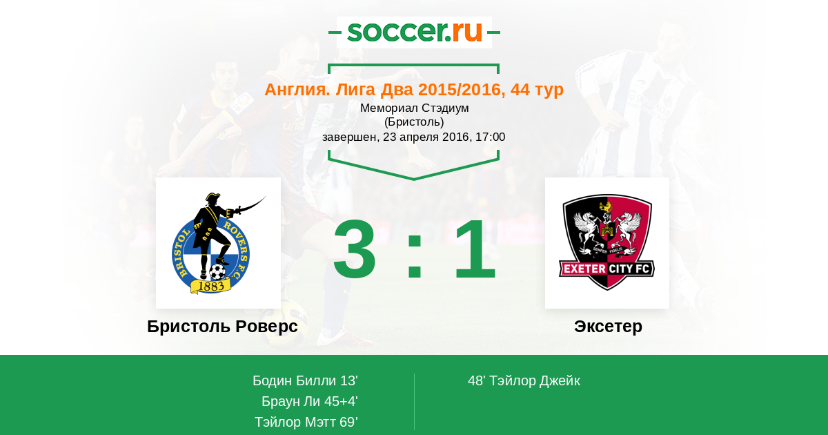 Англия. Вторая Футбольная Лига 28.11.2015 Эксетер Логотип футбольный клуб Эксетер 1:1 Логотип футбольный клуб Бристоль Роверс Бристоль Роверс