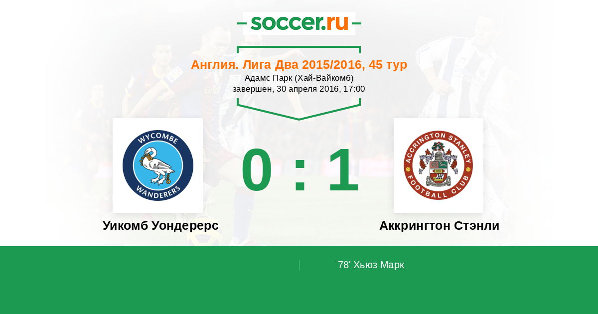 Англия. Вторая Футбольная Лига 16.03.2016 Аккрингтон Стэнли Логотип футбольный клуб Аккрингтон Стэнли 1:1 Логотип футбольный клуб Уикомб Уондерерс (Хай-Вайкомб) Уикомб Уондерерс