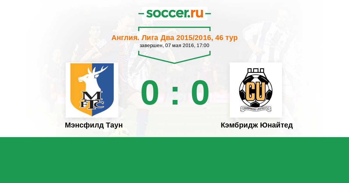 Англия. Вторая Футбольная Лига 03.09.2016 Мэнсфилд Таун Логотип футбольный клуб Мэнсфилд Таун 0:0 Логотип футбольный клуб Кэмбридж Юнайтед Кэмбридж Юнайтед