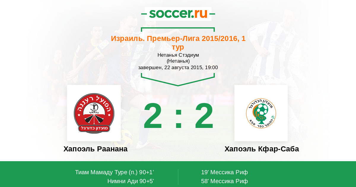 Израиль. Премьер-Лига 12.12.2015 Хапоэль Кфар-Саба Логотип футбольный клуб Хапоэль Кфар-Саба 0:0 Логотип футбольный клуб Хапоэль Раанана Хапоэль Раанана
