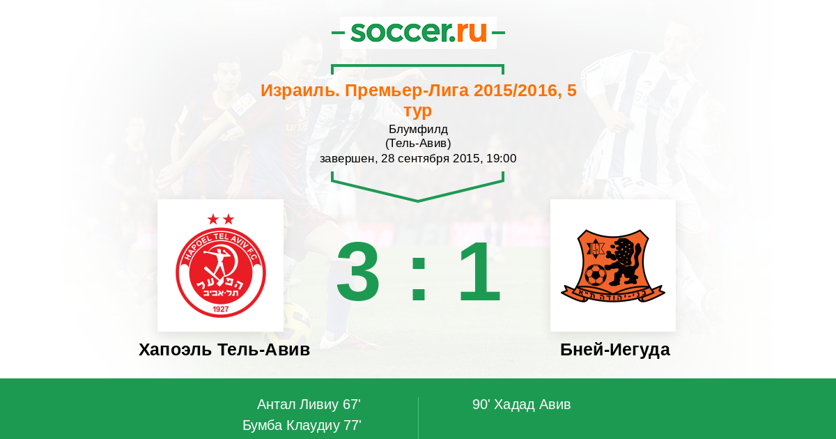 Израиль. Премьер-Лига 15.09.2012 Хапоэль Тель-Авив Логотип футбольный клуб Хапоэль Тель-Авив 2:0 Логотип футбольный клуб Бней-Иегуда (Тель-Авив) Бней-Иегуда