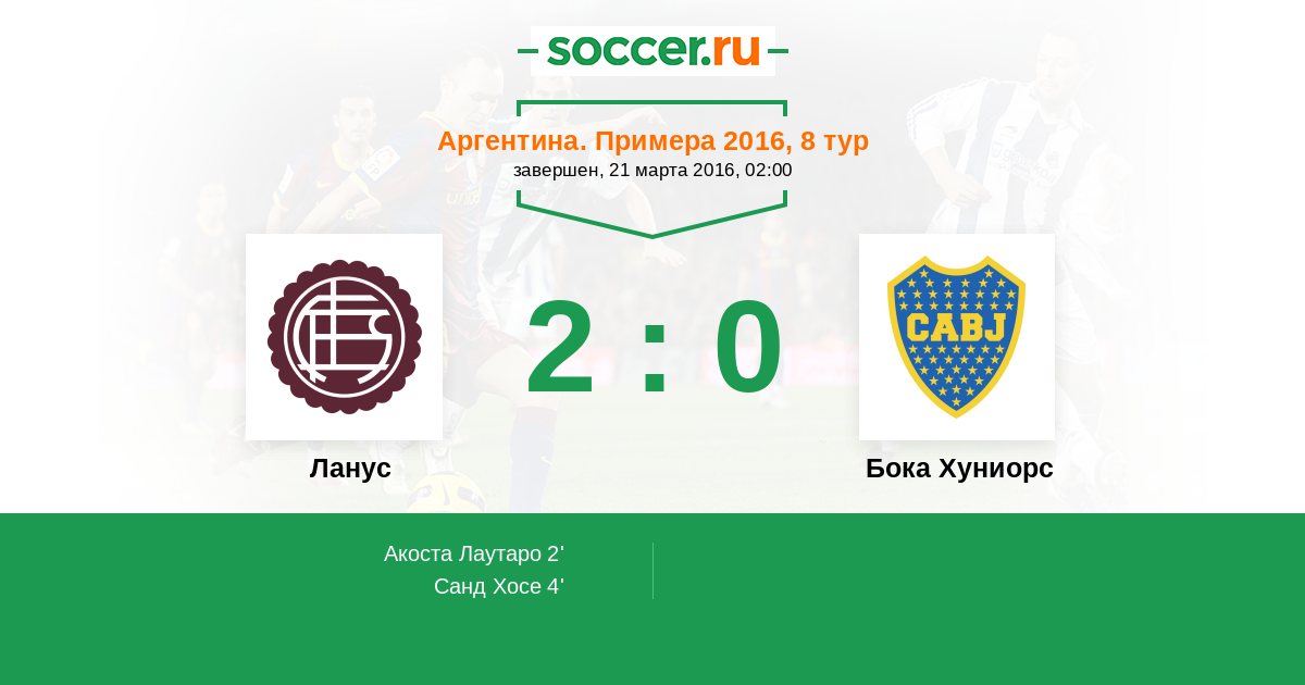Аргентина. Суперлига 29.08.2016 Ланус Логотип футбольный клуб Ланус 1:0 Логотип футбольный клуб Бока Хуниорс (Буэнос-Айрес) Бока Хуниорс