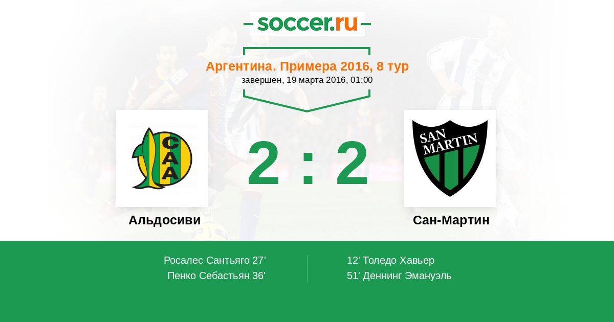 Аргентина. Суперлига 29.08.2015 Альдосиви Логотип футбольный клуб Альдосиви (Мар-дель-Плата) 2:0 Логотип футбольный клуб Сан-Мартин (Сан Хуан) Сан-Мартин