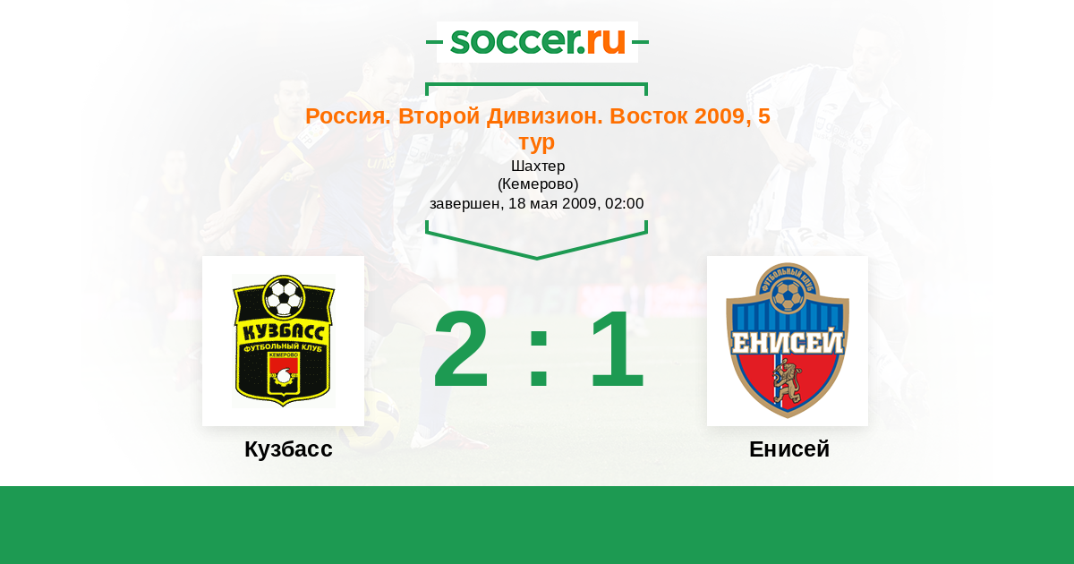 Россия. 2-й дивизион. Восток 05.07.2009 Енисей Логотип футбольный клуб Енисей (Красноярск) 0:2 Логотип футбольный клуб Кузбасс (Кемерово) Кузбасс