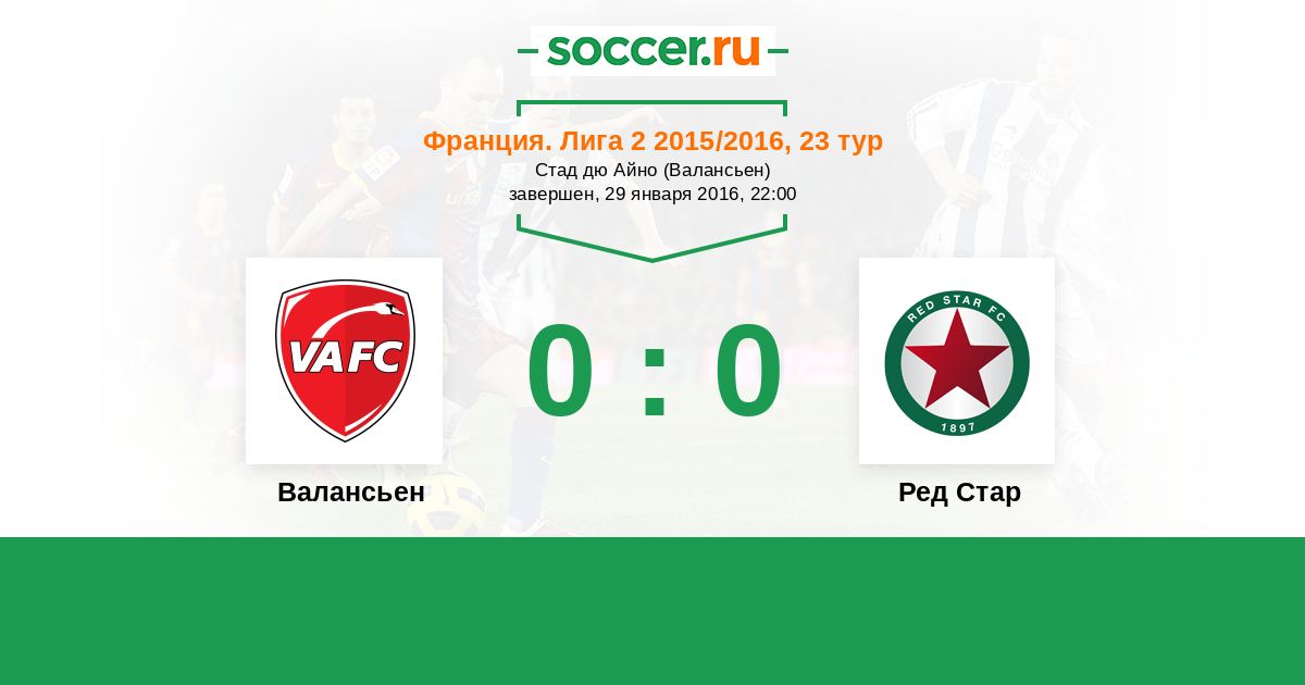 Франция. Лига 2 28.08.2015 Ред Стар Логотип футбольный клуб Ред Стар (Сен-Уэн) 1:5 Логотип футбольный клуб Валансьен Валансьен