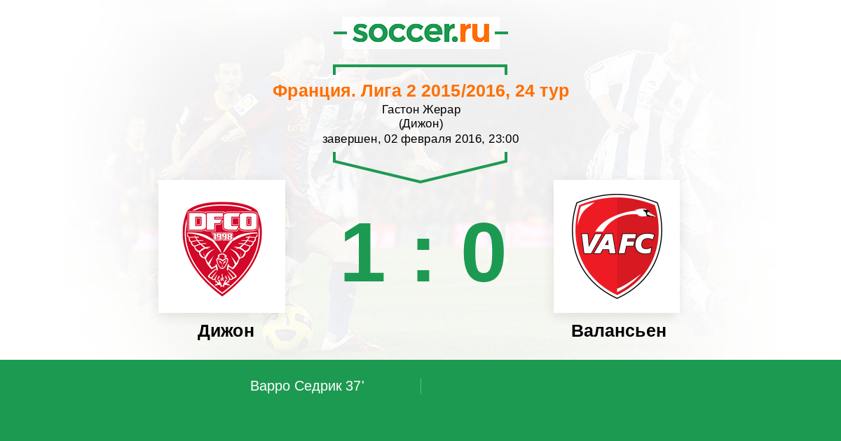 Франция. Лига 2 12.09.2015 Валансьен Логотип футбольный клуб Валансьен 1:3 Логотип футбольный клуб Дижон Дижон