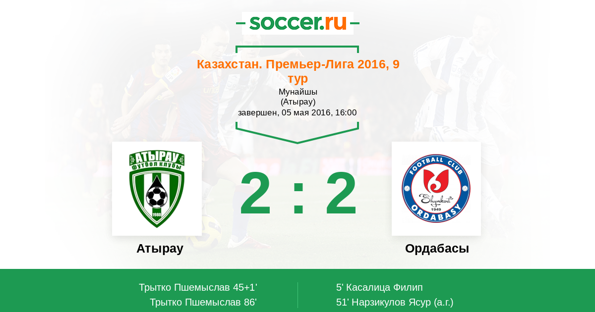 Казахстан. Премьер-лига 24.05.2015 Атырау Логотип футбольный клуб Атырау 1:1 Логотип футбольный клуб Ордабасы (Шымкент) Ордабасы
