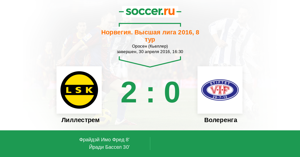 Норвегия. Высшая лига 26.05.2018 Волеренга Логотип футбольный клуб Волеренга (Осло) 1:0 Логотип футбольный клуб Лиллестрем Лиллестрем