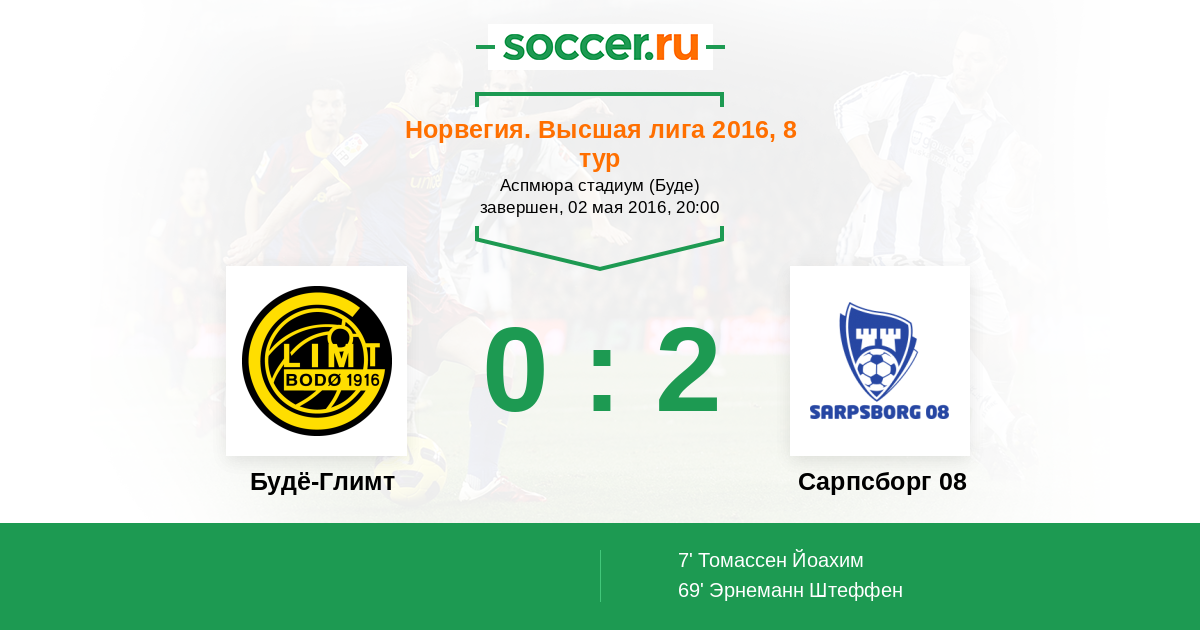 Норвегия. Высшая лига 11.09.2016 Сарпсборг 08 Логотип футбольный клуб Сарпсборг 08 1:2 Логотип футбольный клуб Будё-Глимт Будё-Глимт