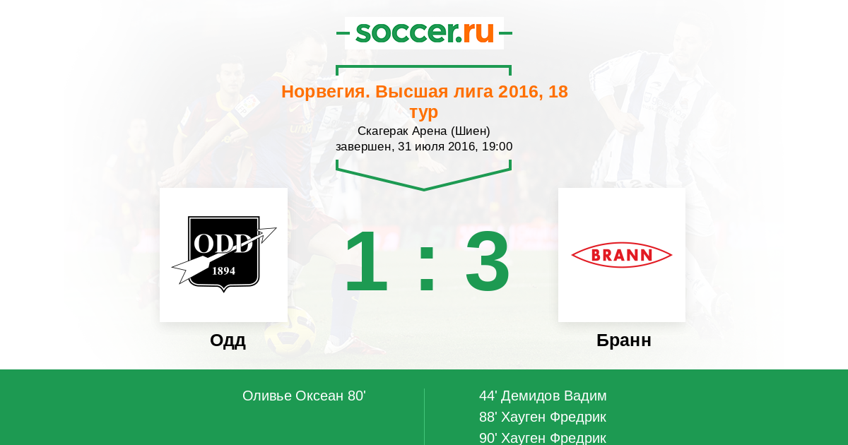 Норвегия. Высшая лига 24.08.2013 Одд Логотип футбольный клуб Одд (Шиен) 1:3 Логотип футбольный клуб Бранн (Берген) Бранн