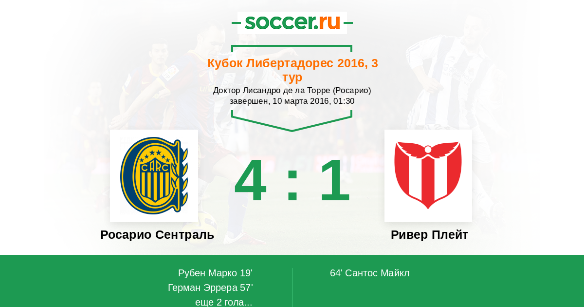 Росарио Сентраль 3:1 0:0 3:1