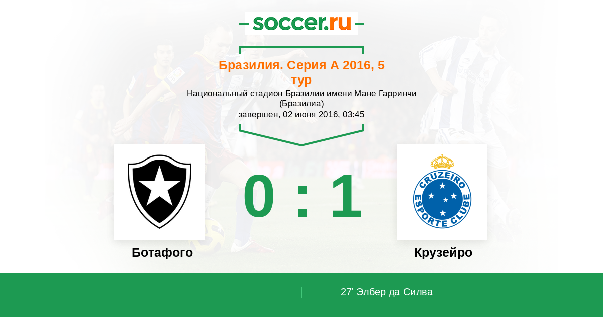 Бразилия. Кубок 01.09.2016 Ботафого Логотип футбольный клуб Ботафого (Рио-де-Жанейро) 2:5 Логотип футбольный клуб Крузейро (Белу-Оризонти) Крузейро