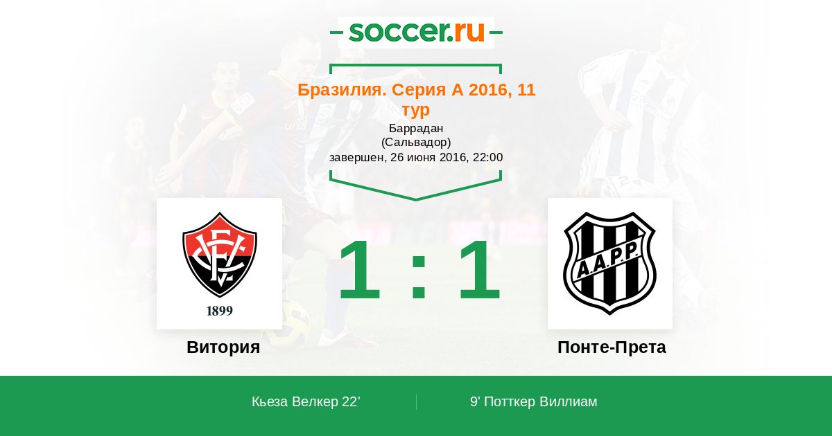 Бразилия. Серия В 25.06.2011 Понте-Прета Логотип футбольный клуб Понте-Прета (Кампинас) 0:0 Логотип футбольный клуб Витория (Сальвадор) Витория