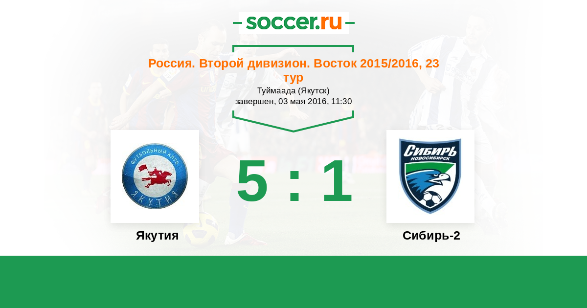 Россия. 2-й дивизион. Восток 03.05.2016 Якутия Логотип футбольный клуб Якутия (Якутск) 5:1 Логотип футбольный клуб Сибирь-2 (Новосибирск) Сибирь-2