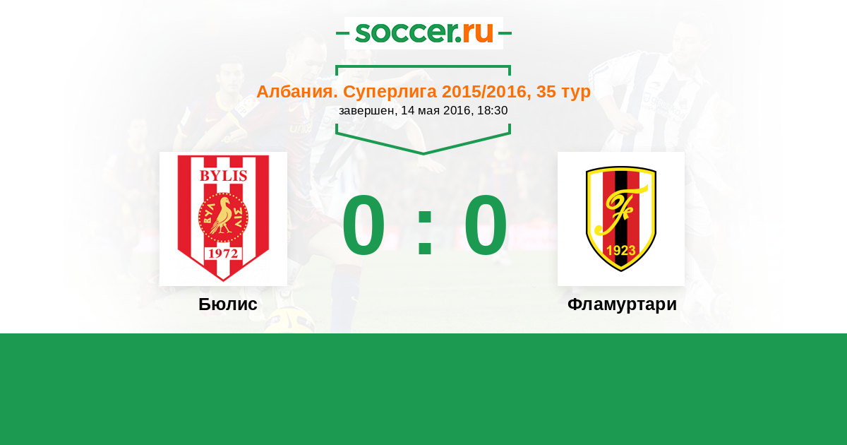 Албания. Суперлига 25.10.2015 Фламуртари Логотип футбольный клуб Фламуртари (Влера) 0:0 Логотип футбольный клуб Бюлис (Баллш) Бюлис