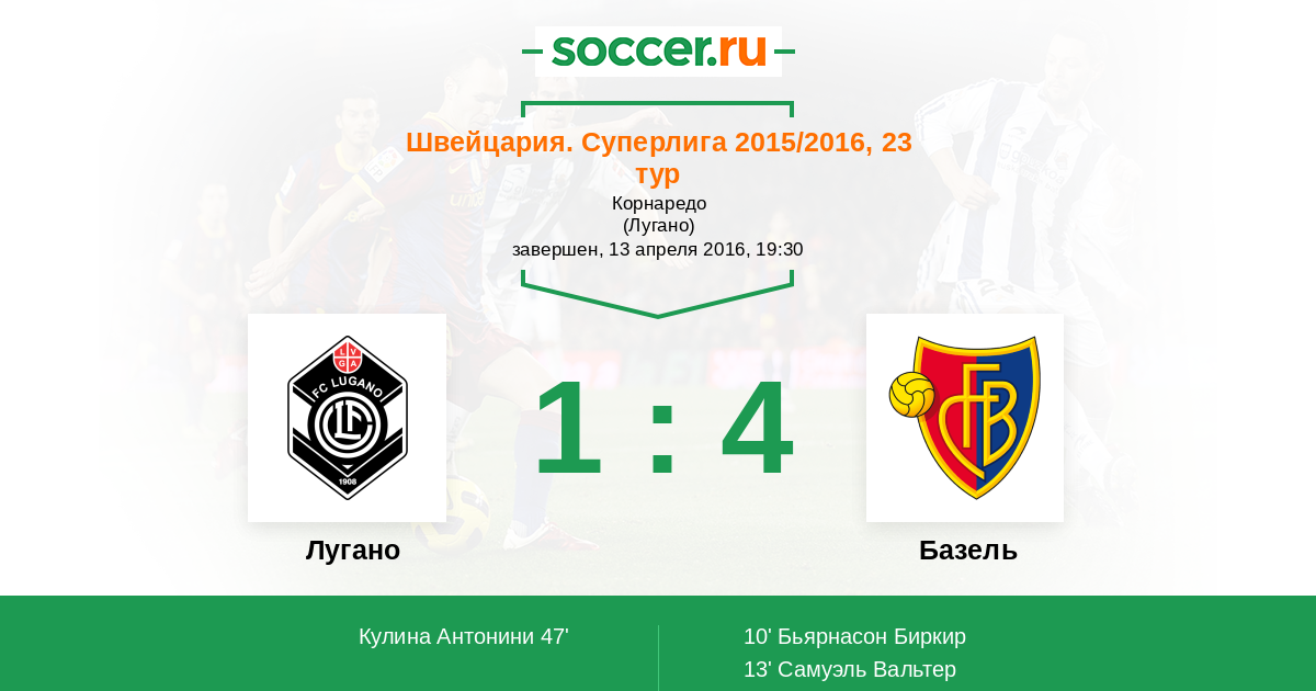 Швейцария. Суперлига 20.04.2016 Базель Логотип футбольный клуб Базель 3:0 Логотип футбольный клуб Лугано Лугано